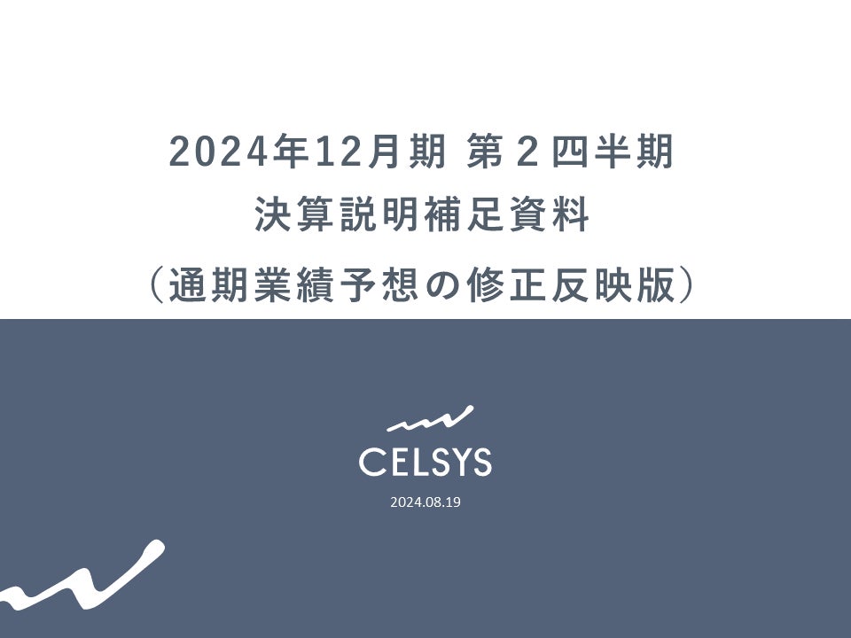セルシスは、8月9日(金)に告知を行った通期連結業績予想の上方修正に伴い、8月2日(金)に公開の2024年12月期 第2四半期 決算説明補足資料を更新し、本日公開しました。修正した2024年12月期の売上高は80億9百万円、営業利益は19億8千8百万円を計画しており、グループとして過去最高益を予想しています。