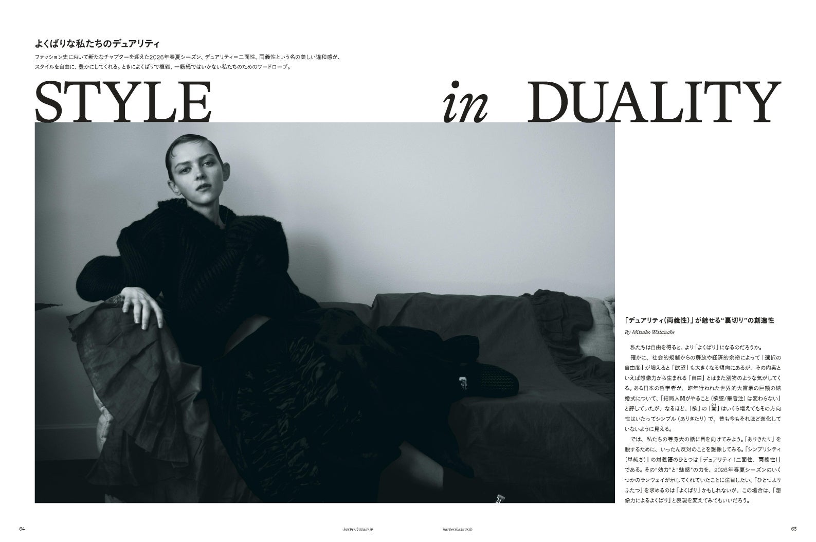 ファッション史において新たなチャプターを迎えた2026年春夏シーズン。今、私たちのスタイルを自由に、そして豊かにしてくれるのは、「デュアリティ(両義性・二面性)」という名の“美しい違和感”です。本特集では、相反する要素が拮抗することで生まれる、新しい美の可能性を多角的にひも解きます 。