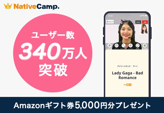 ネイティブスピーカーと回数無制限のオンライン英会話サービス「ネイティブキャンプ英会話」を展開する株式会社ネイティブキャンプ(東京都渋谷区 代表取締役:谷川国洋)は、2025年6月28日(土)、国内オンライン英会話業界で最多となるユーザー数340万人を突破いたしました。