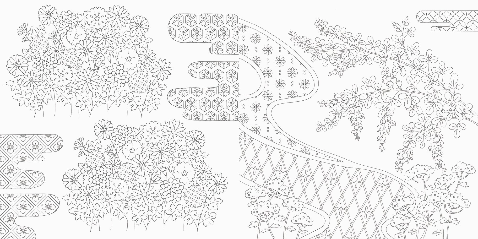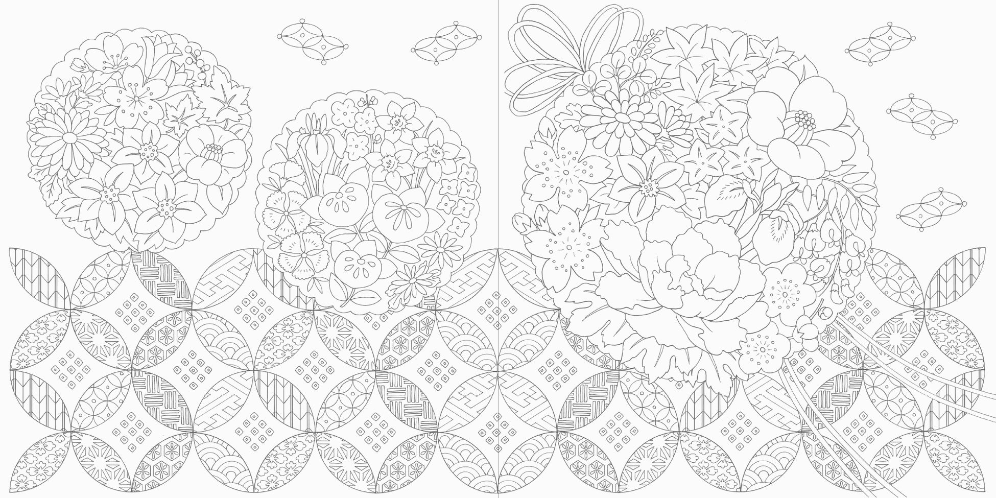 シリーズ累計14万部超、やさしく繊細な絵柄が人気の「和のぬり絵ブック」の新シリーズが登場。桜・菖蒲・紅葉・椿といった季節の草花や風景、扇・薬玉・折り紙などの和のモチーフ、麻の葉・七宝・矢絣のような伝統文様など、これまで以上にバリエーション豊かで華やかな「花と和柄」が満載です。色がより引き立つよう、すべての絵柄がやさしいグレーの線で描かれているのも新しい特長のひとつ。日本の四季の美しさを感じながら、楽しくぬっていただける1冊です。