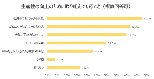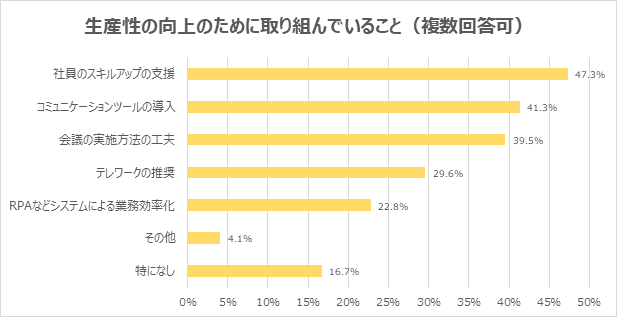 (3) 生産性の向上のために取り組んでいることは「社員のスキルアップの支援」が最多