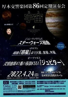 『厚⽊交響楽団 第86回定期演奏会 ~宇宙(そら)~』が2022年4⽉24⽇ (⽇)に厚⽊市⽂化会館 ⼤ホール(神奈川県厚⽊市)にて開催されます。チケットはカンフェティ(運営:ロングランプランニング株式会社、東京都新宿区、代表取締役:榑松 ⼤剛)にて発売中です。