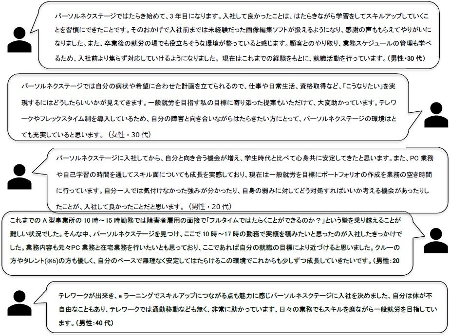 パーソルネクステージは、障害者の一般企業への就労に向けた実践的な業務経験とスキル向上などをサポートする就労継続支援A型事業所を運営しています。全国の企業からPC業務を中心とした「テレワーク」が可能な業務を受託しているため、体調や状況に応じてテレワークと通所を織り交ぜたはたらき方が提供できること、また、一般就労時に使えるPCスキル・業務経験を身に付けられることが大きな特徴です。