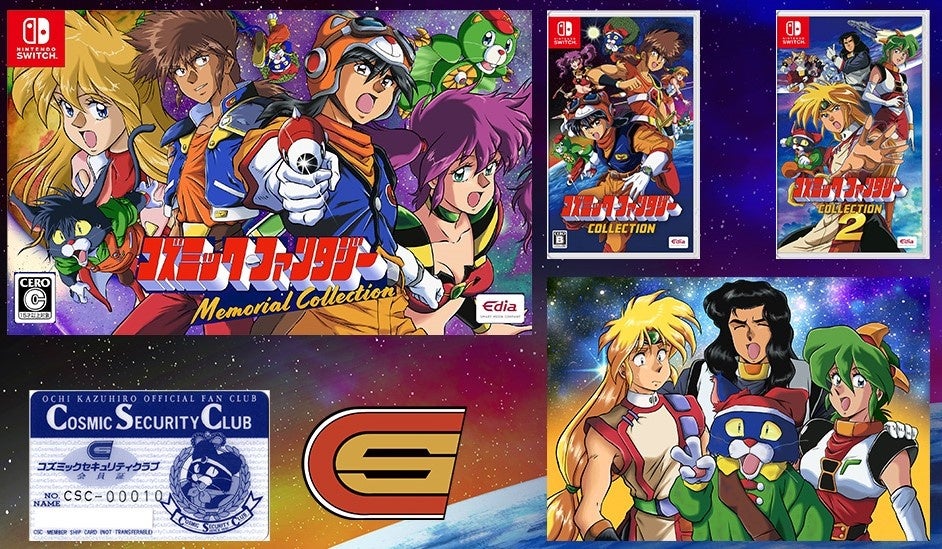 発売日が主人公「ユウ」の誕生日ということで、アニバーサリーとして「コズミック・ファンタジーMemorial Collection限定版」も用意し、パッケージデザインには越智一裕先生の描き下ろしイラストのほか新規描き下ろしのアクリルボード、社員章を模したピンズ、当時の会員証を復刻した豪華特典を同梱しました。