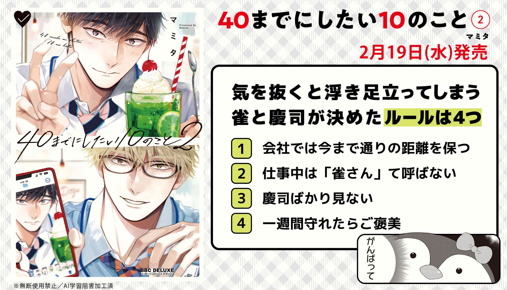 アワード席巻!【大ヒットリーマンBL】最新刊「40までにしたい10のこと②」(著:マミタ) 本日発売!!