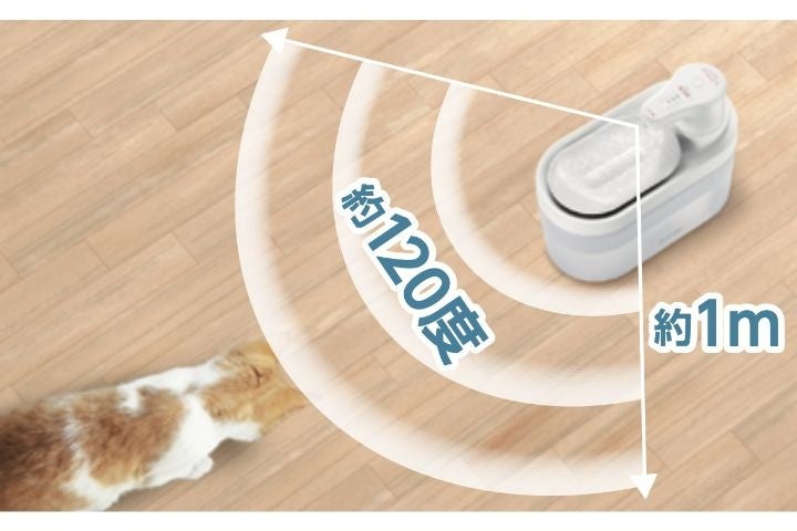 ■センサーモードでは、センサーから約1m以内、約120度の範囲内に近づくと動作を検知して自動で水が流れます。必要なときだけ給水する省エネ仕様です。