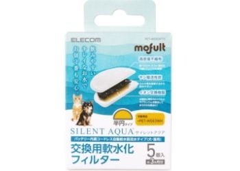 ■エレコムのバッテリー内蔵コードレス自動給水器流水タイプ(犬・猫用)「サイレントアクア」(型番:PET-WD03WH)専用の交換用軟水化フィルターです。