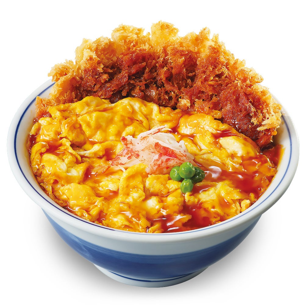 ふわふわ玉子にたっぷりの甘酢餡で仕上げた天津飯を、醤油のきいたジューシーなチキンカツを覆うように盛りつけ、たっぷり玉子とボリューム感のあるチキンカツを一度に味わっていただきたいと考え誕生した「天津飯チキンカツ」は、丼と定食でお楽しみいただけます。