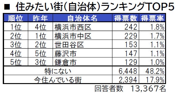 ■住みたい街(自治体)トップは、横浜市西区