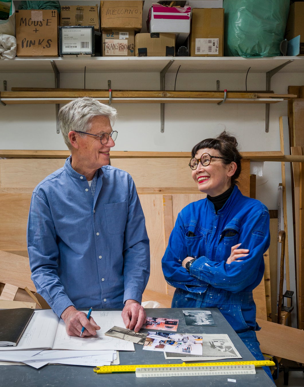 ロンドンを拠点とするマーク・ダンヒルとタミコ・オブライエンは、1998年からアーティスト・デュオとして共同制作を行う。二人は、個々の好みや従来の彫刻制作に伴う複雑な工程にとらわれることなく、協働の難しさと可能性を創造の糧とし、思いがけない発見をもたらしながら表現活動を展開する。独自の装置を作ったり、パフォーマンスや他者との共同作業を取り入れたりしながら作品を生み出している。本展では、彫刻とDIYの垣根を超え、複数のセクションで構成されるインスタレーションを制作する。
