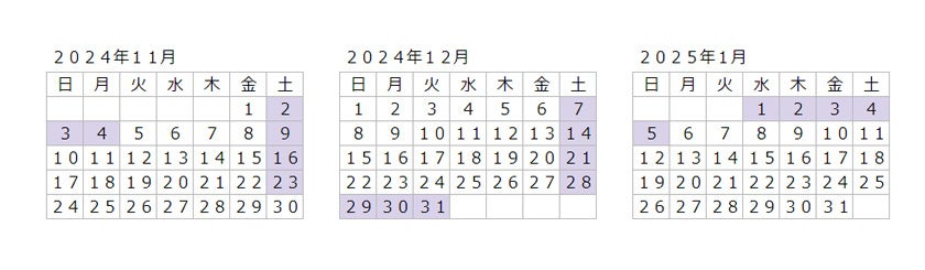・実施日 :2024年11月2⽇(土)〜2025年1⽉5⽇(日)のうち計18日間
