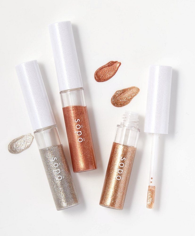 シャドウにもライナーにもなる万能なチップ形状でまぶただけではなく、目尻や涙袋などでも使うことができ、簡単に「うるうるアイ」が演出できます。大小様々な大きさのグリッターで遠目で見ても印象に残るきらめいた目元に。