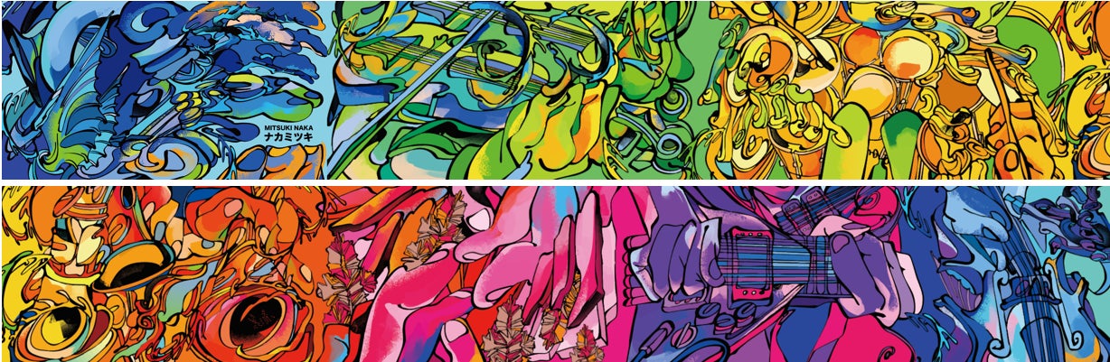 「NIHONBASHI RIVER WALK MUSEUM」第一弾は、スマートフォンで制作活動をするデジタルネイティブの若手作家ナカミツキ氏による作品「Nihonbashi Symphonia ー響きあう多声的な都市像ー」を掲出します。本作は受け継がれた記憶や交流、川の流れをテーマに描いた「共鳴の風景」です。多様性と調和を象徴する七色のグラデーションや歴史的なモチーフによって、過去と未来、街と人々とを共鳴させ、新たな対話が生まれる場を目指します。
