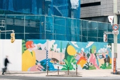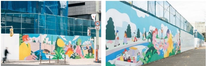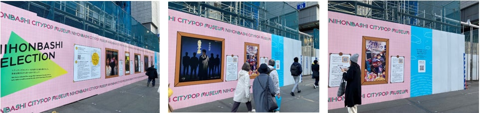 日本橋リバーウォークでは2023年から仮囲い装飾を行っており、過去にはエリアの歴史写真や未来の日本橋をイラストレーターが表現したアートワークの掲出、シティ・ポップカルチャーを題材にアートと音楽を楽しめる施策などを実施してまいりました。