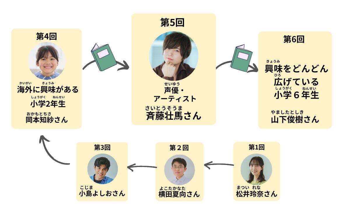 「読書推せん文リレー」とは、学研キッズネットの特設ページ上で、相手に読んでほしい本とおすすめの理由を書いた推せん文をバトンにして、次のゲスト、さらに次のゲストへと繋いでいく企画です。登場するのは様々な分野で活躍している著名人3名と、学研キッズネットに所属する「探Qキッズ」3名。