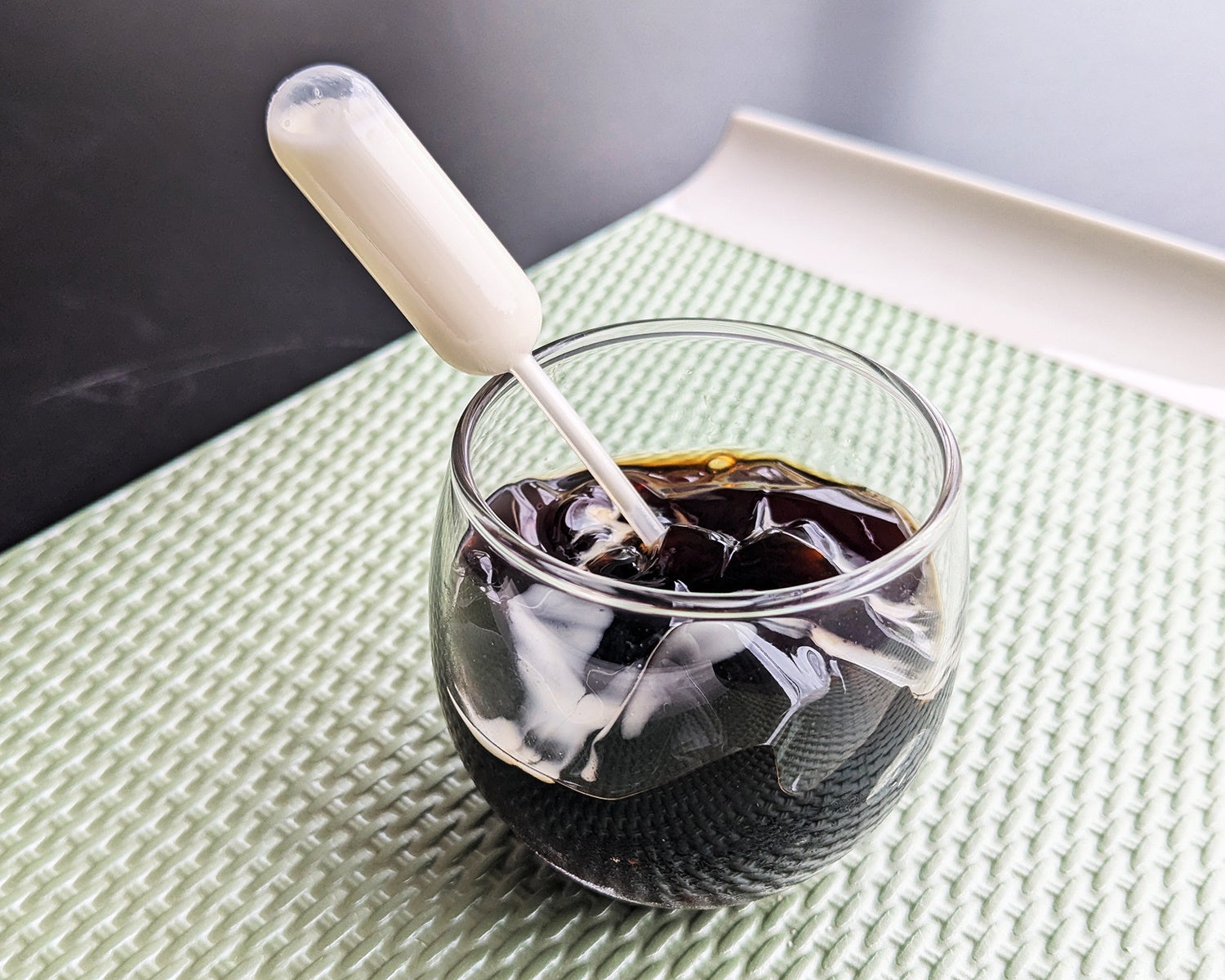 香り豊かなコーヒーゼリーにスポイトに入ったフレッシュをお好みで加えることで、まろやかな味わいに変化させることができます。自分好みの量でお楽しみください。