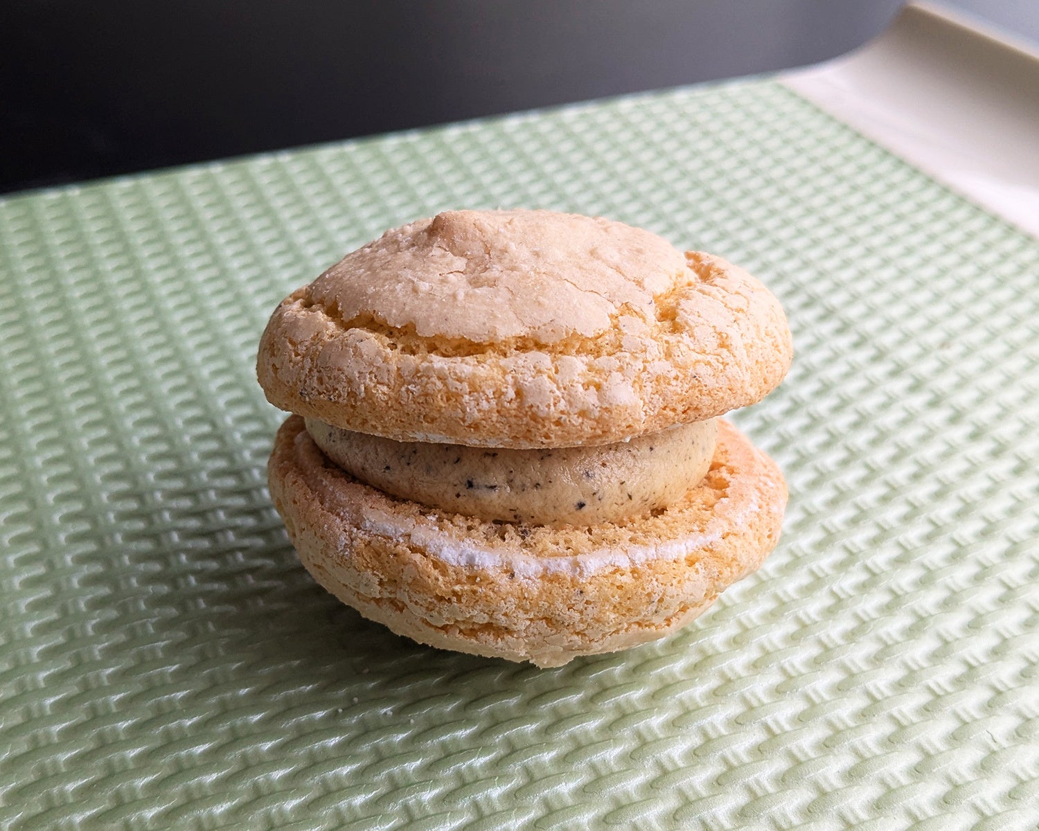 ジャスミンティーのクリームを軽いビスキュイで挟みました。華やかで濃厚な香りをお楽しみください。