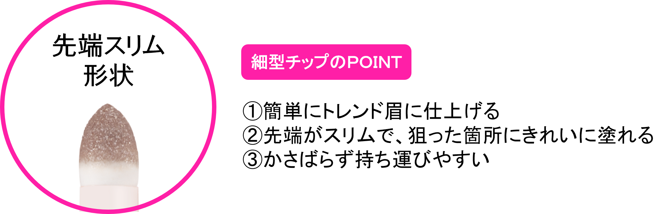 ■眉尻や目尻に塗りやすく、簡単にトレンドメイクが叶う細型チップタイプ