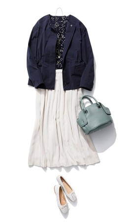 ▽アイボリー、ネイビーのコーディネートは特集ページから