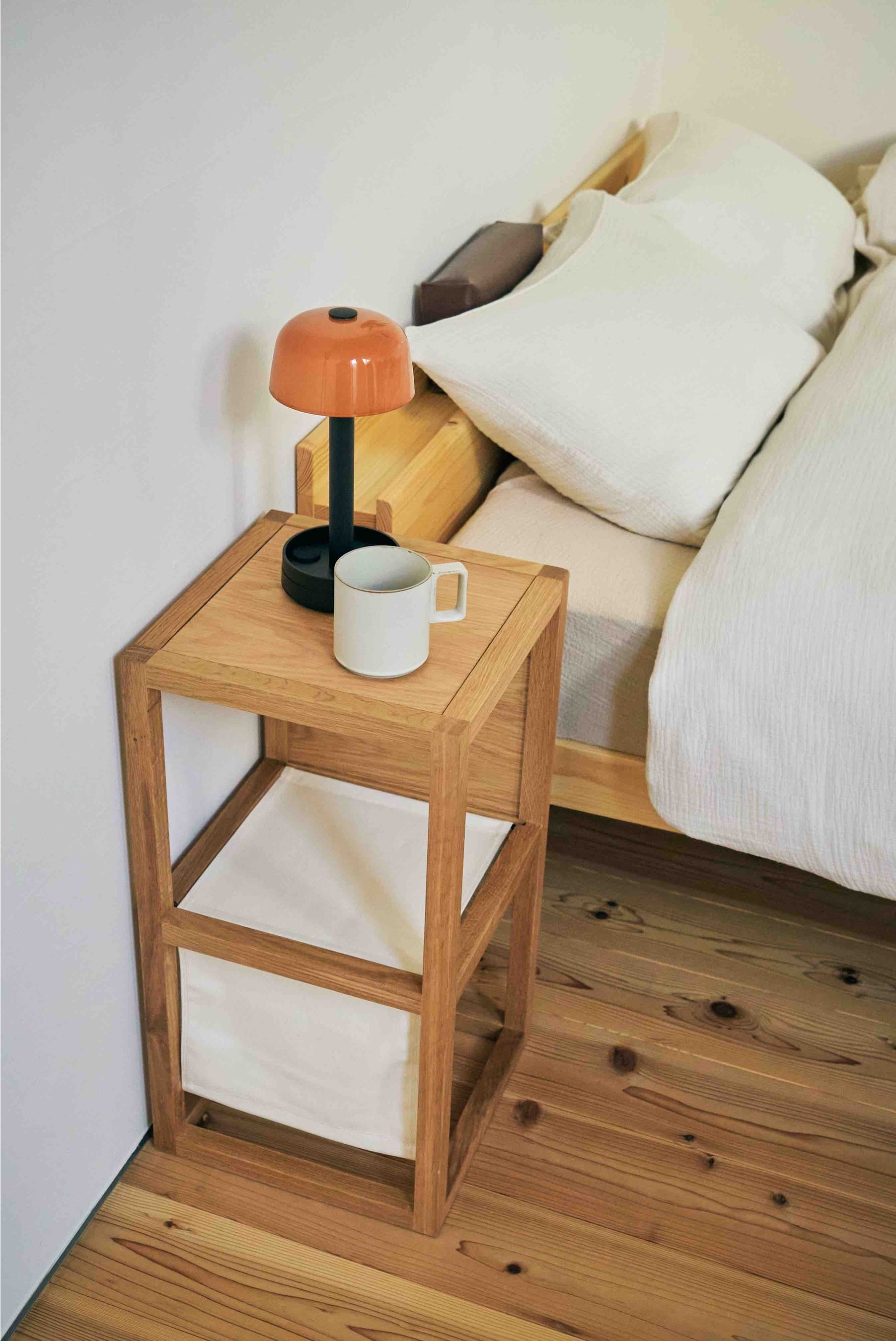 暮らしに合わせて変化して使用できる『MAGAZINE RACK TABLE』は、コンパクトテーブルやスツール、マガジンラックとしても使用できて、チェア同様 Cloth使いが特徴。