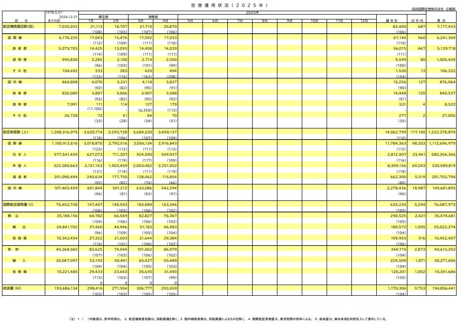 2025年4月 空港運用状況 国際線外国人旅客数が過去最高の225万人超に