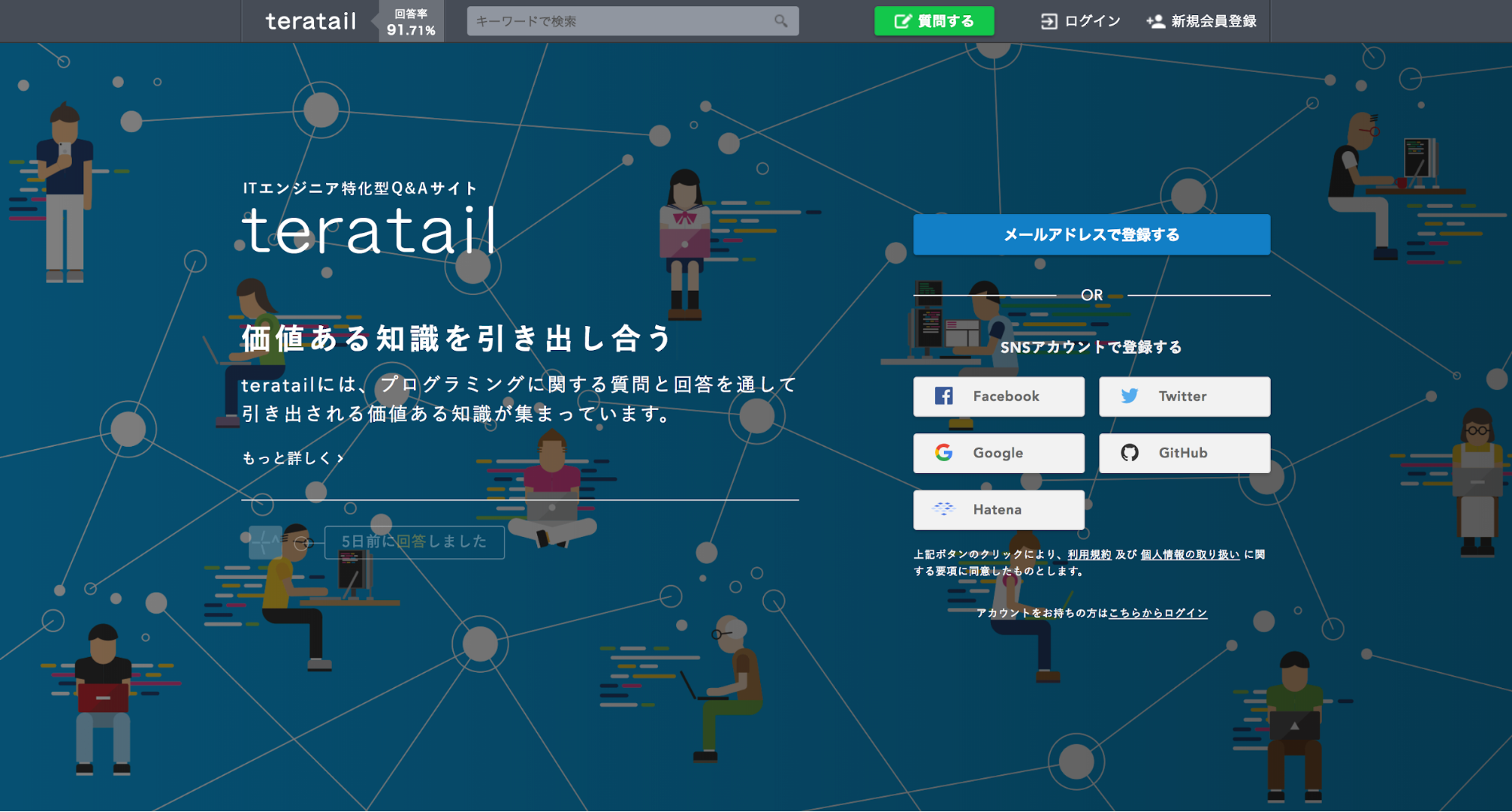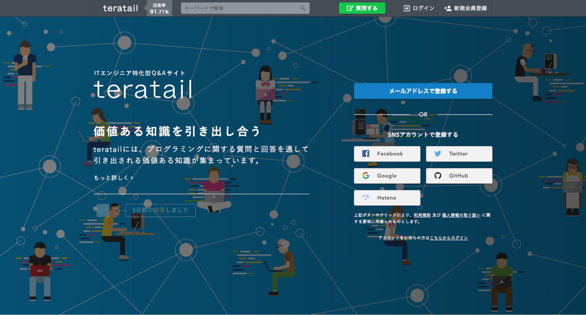 teratailは「エンジニアの問題解決と挑戦を助ける」ことをミッションとし、日々サービス改善に努めてまいりました。サービス開始以来、国内最大級のエンジニア向けQ&Aプラットフォームとして、多くのエンジニア同士が助け合い、疑問を解決する場を築いています。