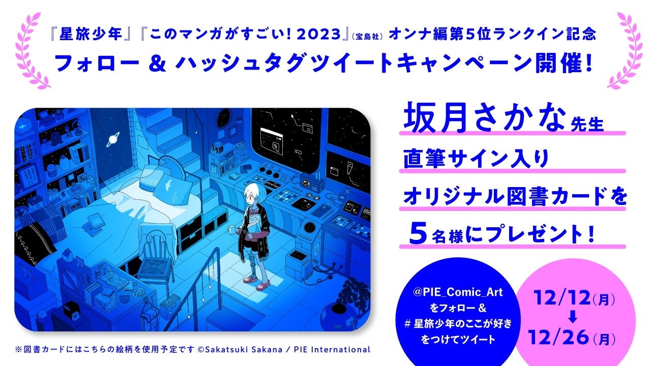 2021年7月からパイ インターナショナルのコミックレーベル パイコミックスにてWeb連載を行い、2022年4月に第1巻、同年9月に第2巻を発売した『星旅少年』(著・坂月さかな)が、宝島社『このマンガがすごい!2023』オンナ編 第5位にランクインいたしました。