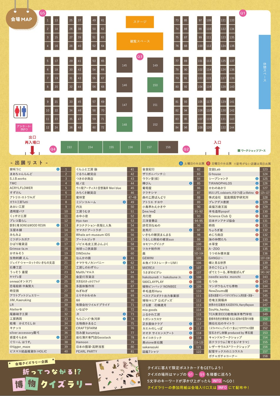 ※一部、「土曜のみ」「日曜のみ」の出展ブースがございます。ご了承ください。