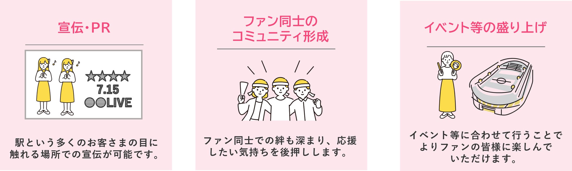 今後も、様々なアーティスト等とのコラボレーションを通じて、「推し活」の楽しさを発信し、駅に賑わいを生み出してまいります。