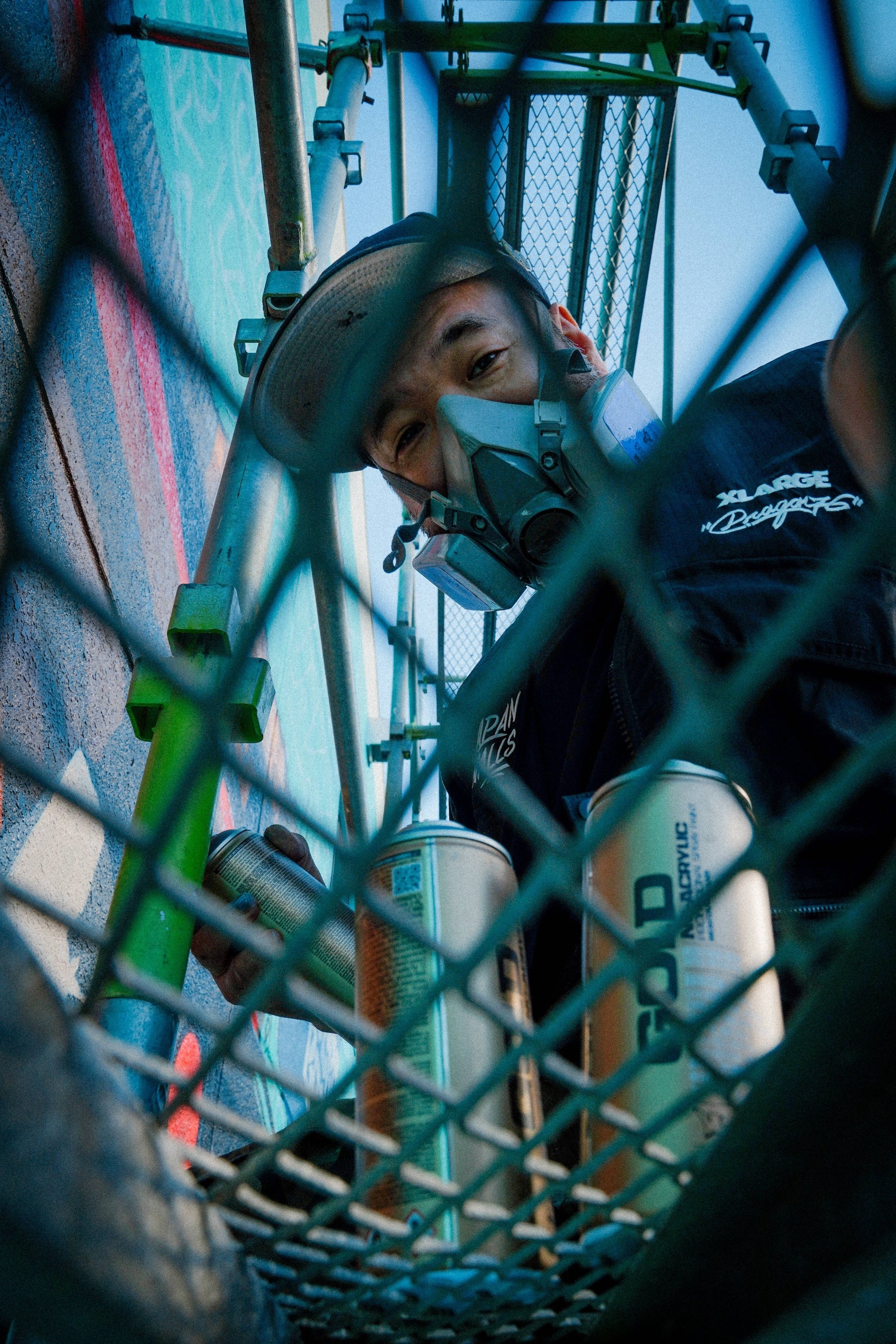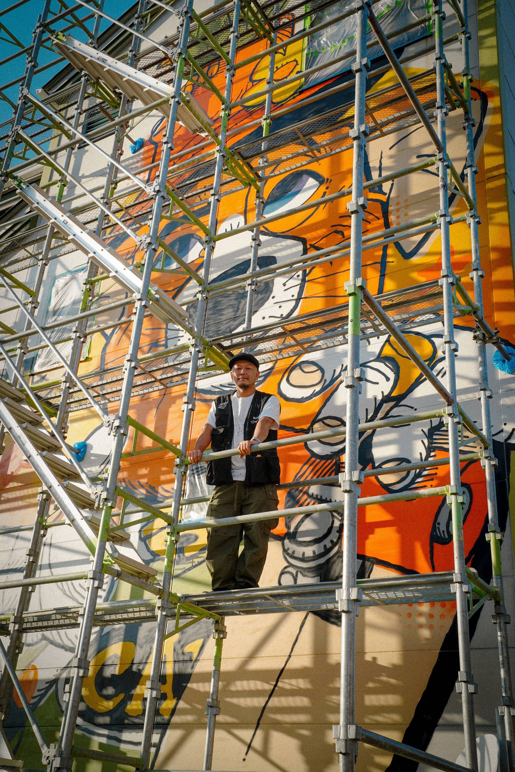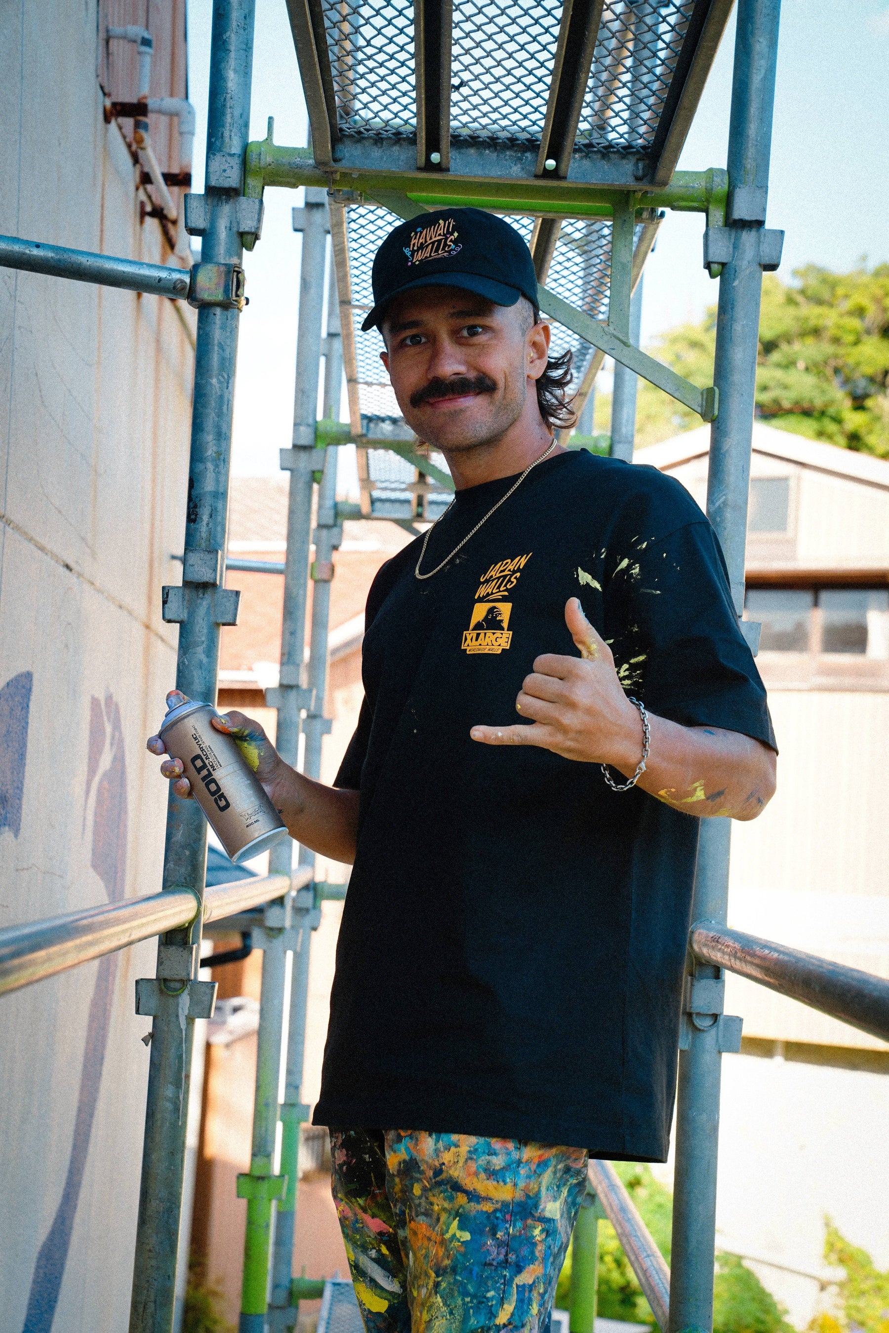 2025年は、「JAPAN WALLS」創立10周年、ワイキキビーチと白良浜の姉妹浜提携25周年、白浜開催5周年が重なる特別な年です。この節目を記念して、XLARGEはDRAGON76を迎え、JAPAN WALLSとのトリプルコラボレーションアイテムを制作・販売いたしました。アーティストのための実用的なアイテムとして、スプレー缶の収納ポケットを備えたベストとジャケット、Tシャツをイベントユニフォームとして提供し、ミューラル制作の活動サポートを行いました。イベントの様子を収めた写真をご紹介します。