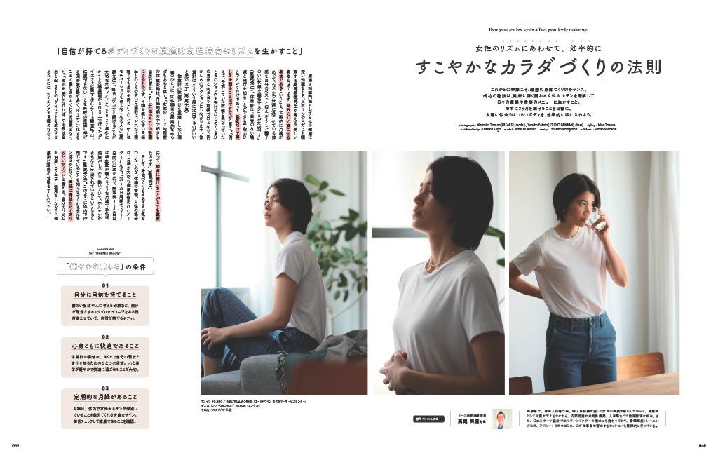 ヘアやメイク、スキンケアなど、外側を磨くことはもちろん、内側からも美しく、健康的でいることも大切にしたい。トレンドに左右されない、自分の心と身体が自然と求めるヘルス&ビューティのスタイルを提案します。