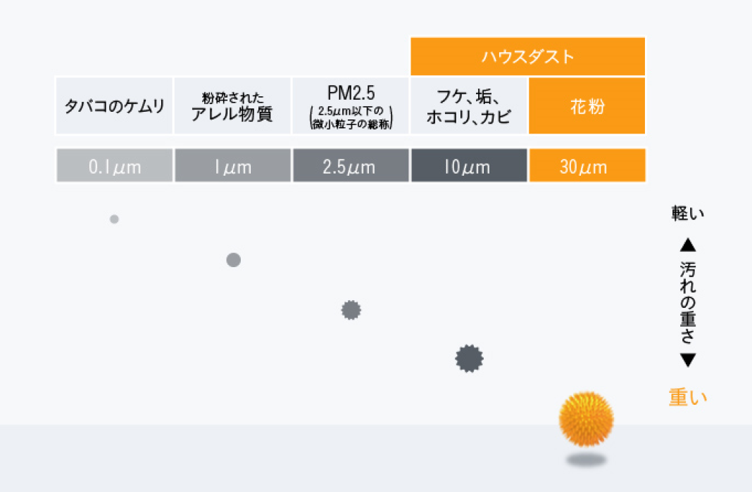ハウスダストの中でも、特に大きく重い花粉までしっかり吸いこみます。