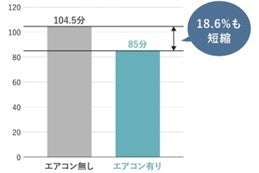 エアコンをつけることで、18畳の部屋において、集じん完了までの時間を約20%短縮できることが分かりました。
