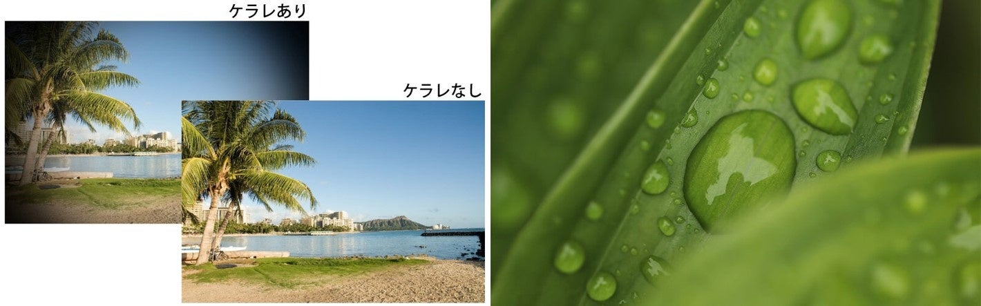 レンズなどが映り込み周囲が暗くなる現象である「ケラレ」を軽減し、きれいに写真が撮れるマルチレンズ構造を採用しています。