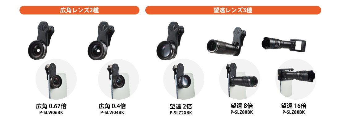 スマートフォンに取り付けるだけ!撮影範囲が広がる“広角レンズ”と遠くのものをアップで撮影できる“望遠レンズ”を新発売