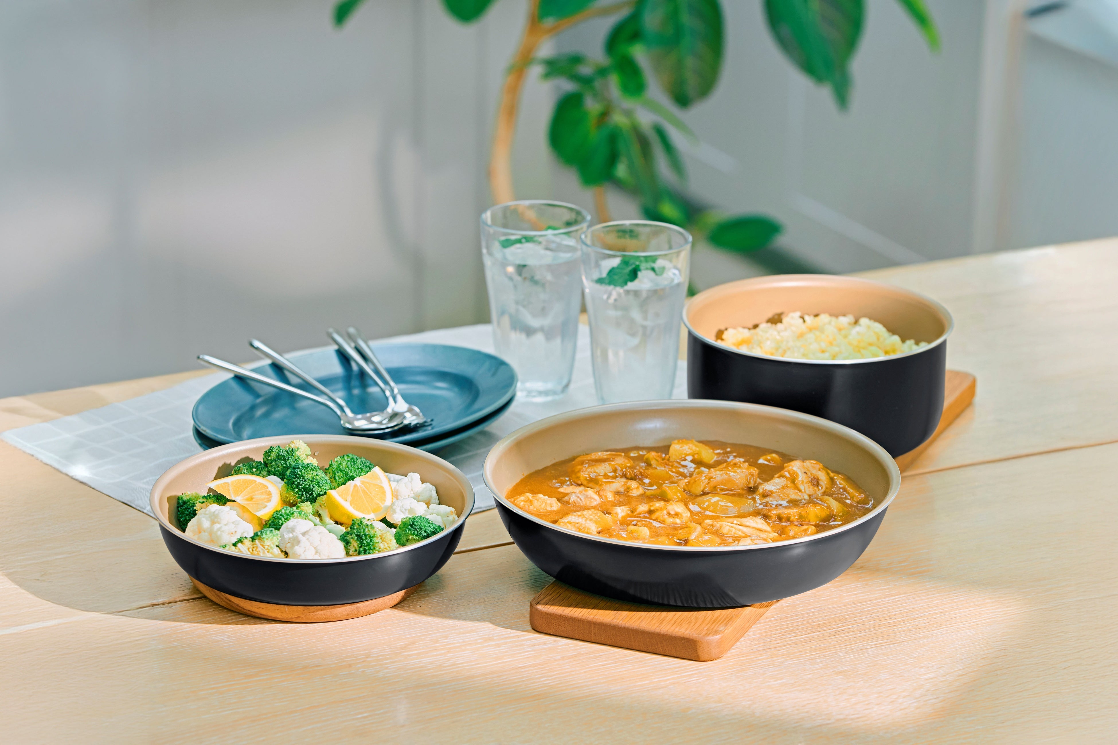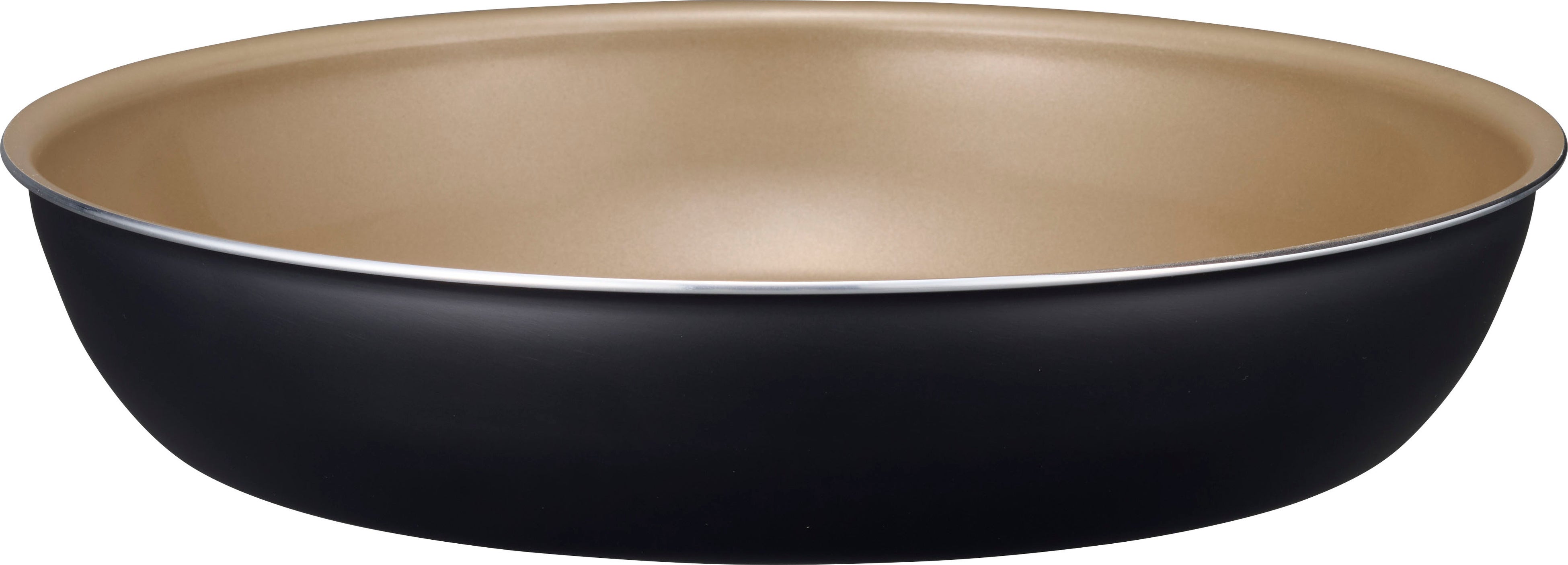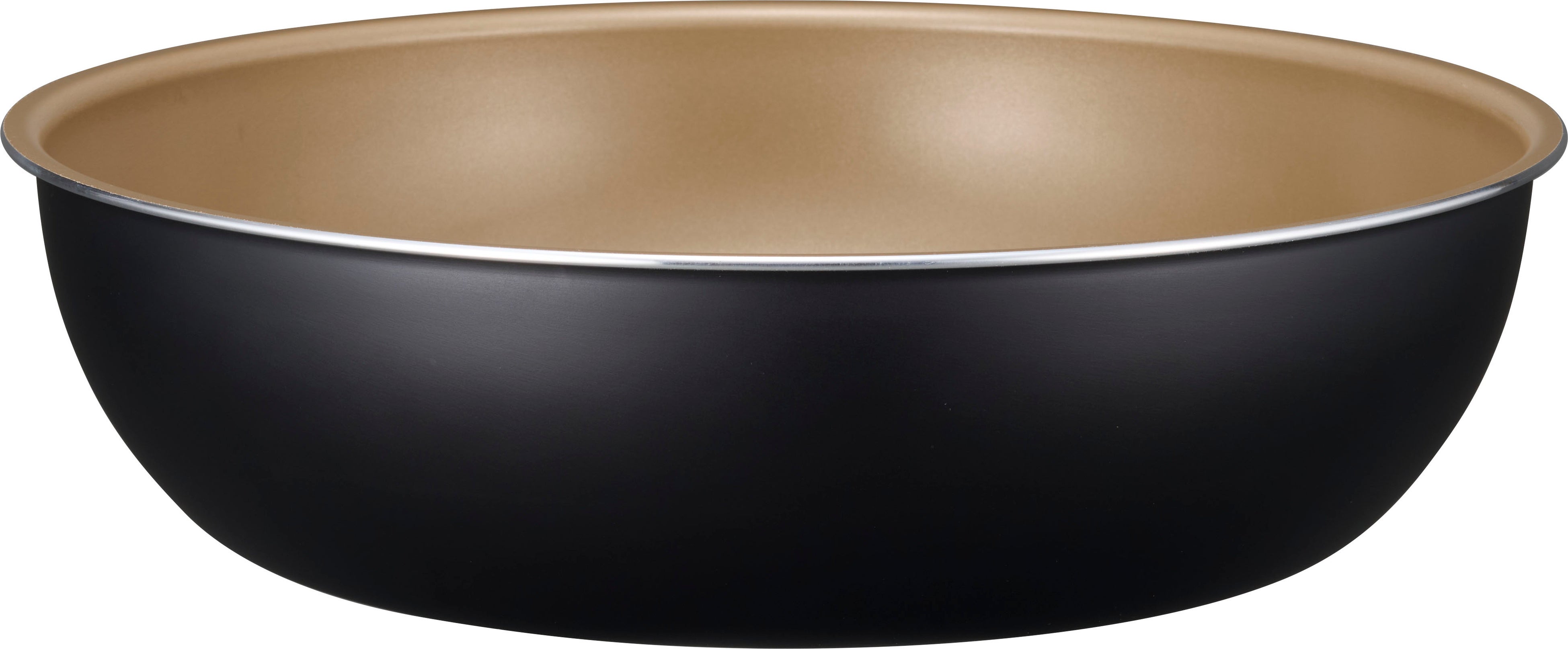 専用ハンドルを外せば、お皿のように使用できるので、できたての料理をそのまま食卓に出すことができます。マットなブラックカラーはどんな料理とも相性がよく、内面のシャンパンゴールドが食卓を明るく演出してくれます。