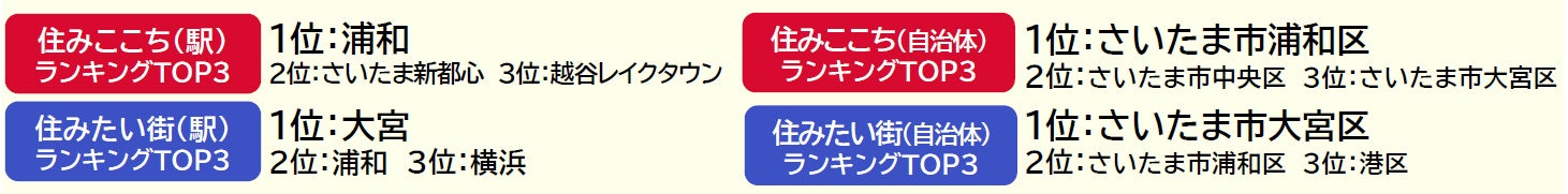 •「住みたい街(駅)ランキング」は、埼玉県居住者の2023年の回答を首都圏内の駅を対象としてランキングを集計しています。「住みたい街(自治体)ランキング」は、埼玉県居住者の2023年回答を全国の自治体を対象としてランキングを集計しています。