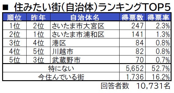 ■住みたい街(自治体)トップは、さいたま市大宮区