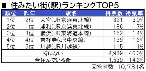 ■住みたい街(駅)トップは、大宮(JR京浜東北線)