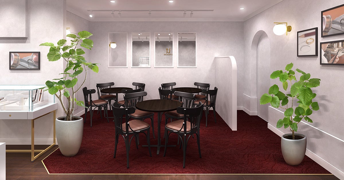 店内には、新作のほか「ポケットモンスター」「サンリオキャラクターズ」「モンスターハンター」などの婚約・結婚指輪のブライダルジュエリーや、腕時計なども展示します。また、「サンリオキャラクターズ」「しろたん」「カピバラさん」など一部ライセンスでは、ジュエリーデザイナーがご希望のモチーフをオリジナルジュエリーデザインに描き、提案するサービスを提供します。