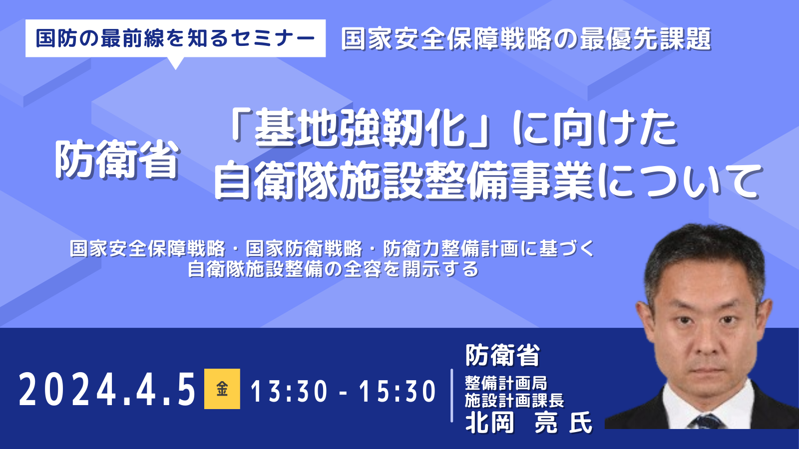 【JPIセミナー】防衛省「”基地強靭化” に向けた自衛隊施設整備事業について」4月5日(金)開催
