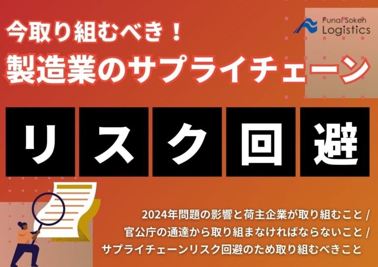 日本最大級の物流コンサルティングファーム 船井総研ロジ株式会社(本社:大阪市中央区、代表:橋本直行、以下「船井総研ロジ」)は、物価高騰、解消されないドライバ―不足、行政による監査対応など、ロジスティクスにおける時流と今後取り組むべき内容について解説した最新資料「今取り組むべき!製造業のサプライチェーンリスク回避」を公開しました。