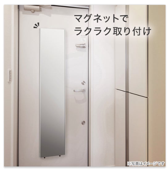 軽量な為、好きな場所に気軽に立掛けられます。さらにマグネットが付いているので、玄関の扉にも簡単に取り付けることができ、お出かけ前にサッと姿見として使える便利さが魅力です。
