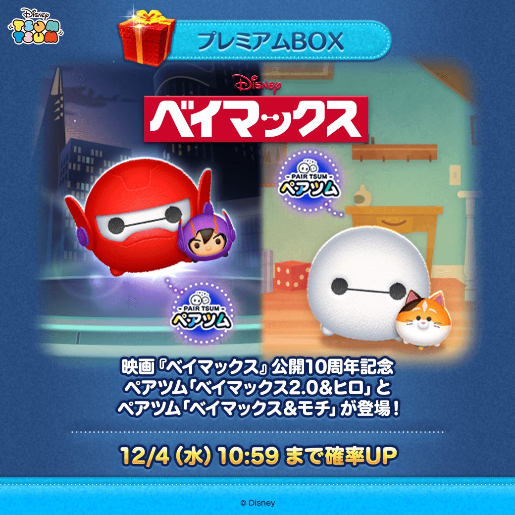 LINEヤフー株式会社が運営するカジュアルパズルゲーム『LINE:ディズニー ツムツム』(iPhone・Android対応/無料)において、12月1日(日)より、「ベイマックス2.0&ヒロ」「ベイマックス&モチ」の新ツム2種類が登場しました。
