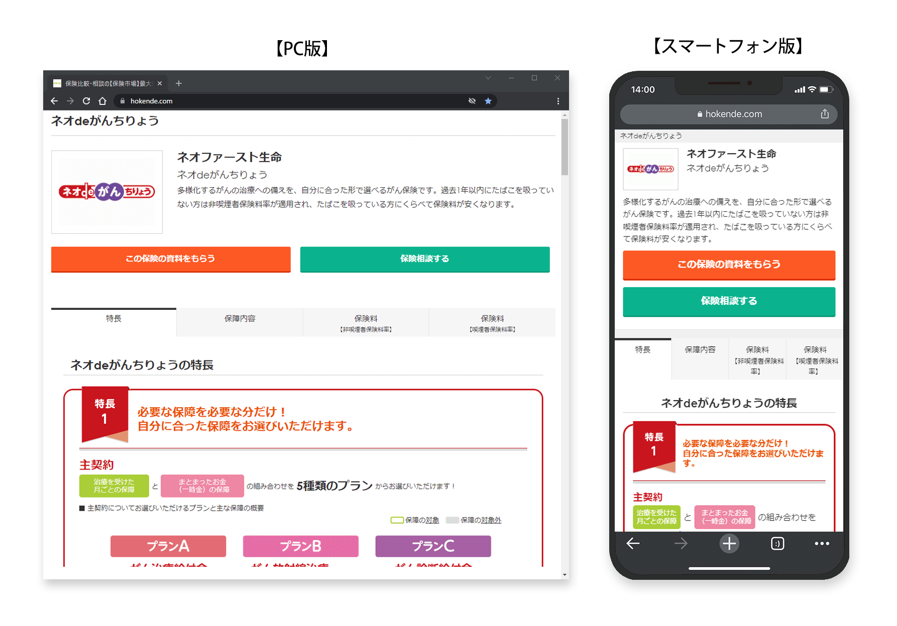 保険選びサイト「保険市場」に掲載を開始したネオファースト生命の『ネオdeがんちりょう』は、対面および通信販売でお申し込みいただける保険商品です。「保険市場」PCサイトおよびスマートフォンサイトにて、商品の詳細をご確認いただけます。