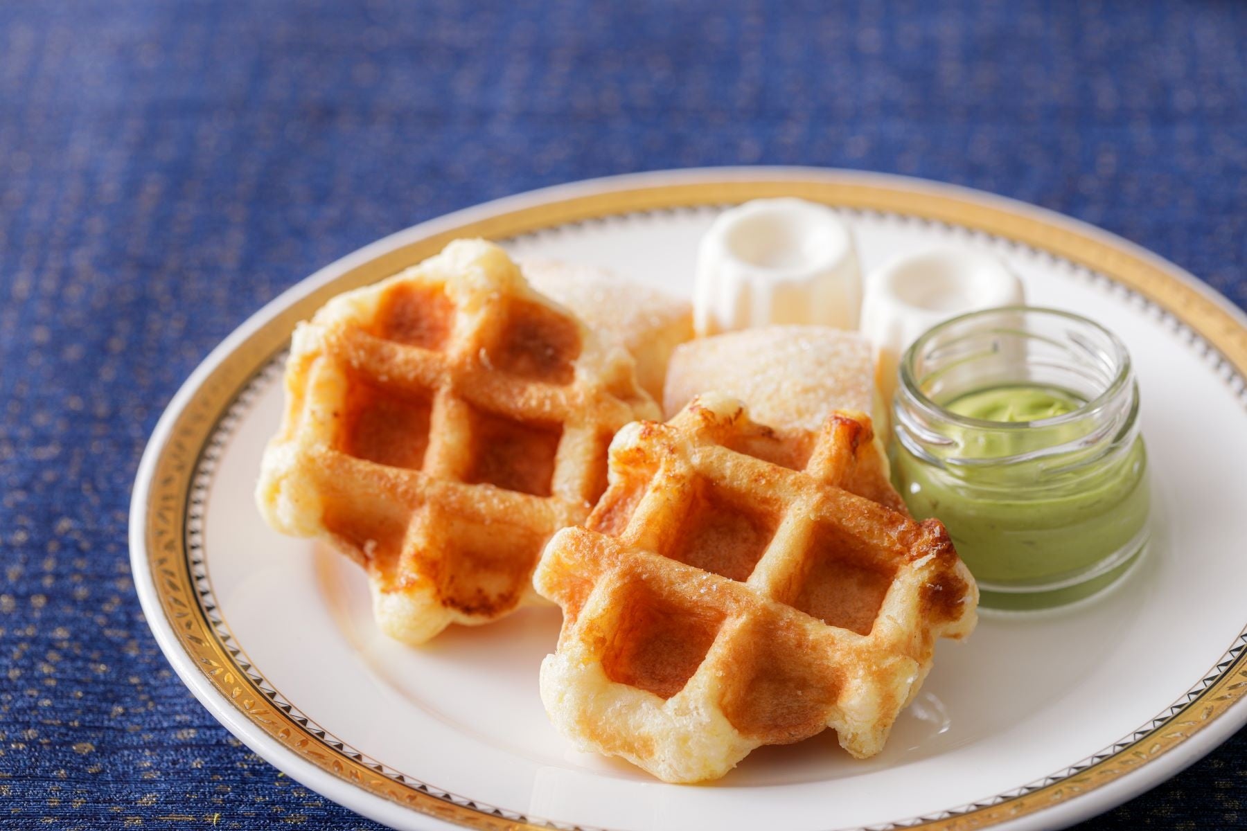 (下段)スコーン/ワッフル/クロテッドクリーム/抹茶クリーム
