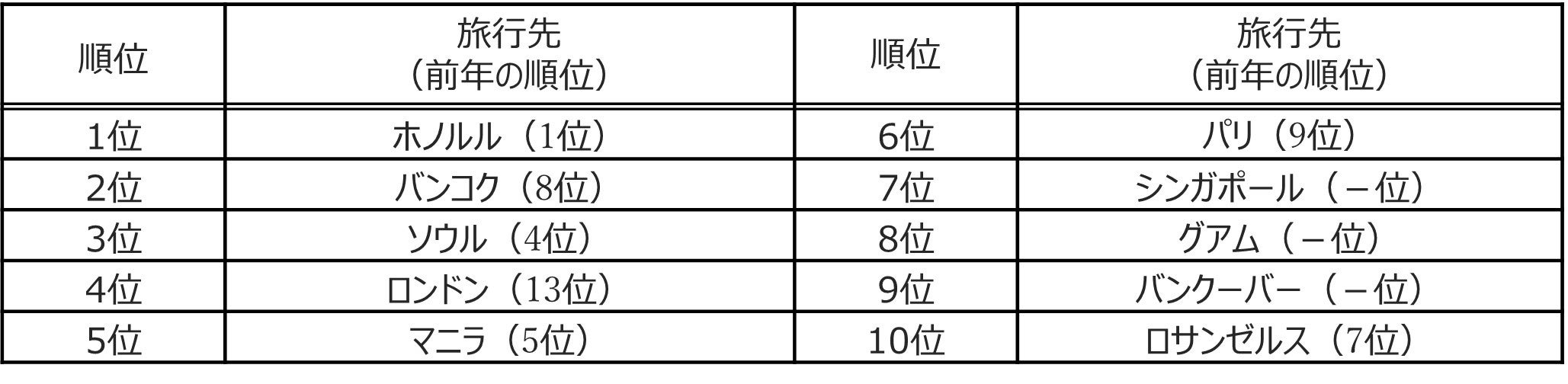 ランキング内に長距離路線が4ヶ国入っており、直近のニュースとしても大きく取り上げられた燃油サーチャージの値上がりによる価格高騰についても、消費マインドを大きく押し下げる要因には至っていないことが分かりました。燃油サーチャージについては、日系航空会社が8月~9月発券分の引き上げを発表しており、過去最高水準の価格となります。7月末には再び航空券の駆け込み需要が予想されますが、例年混み合うハイシーズンとなりますので、お早目のご購入をお薦めいたします。