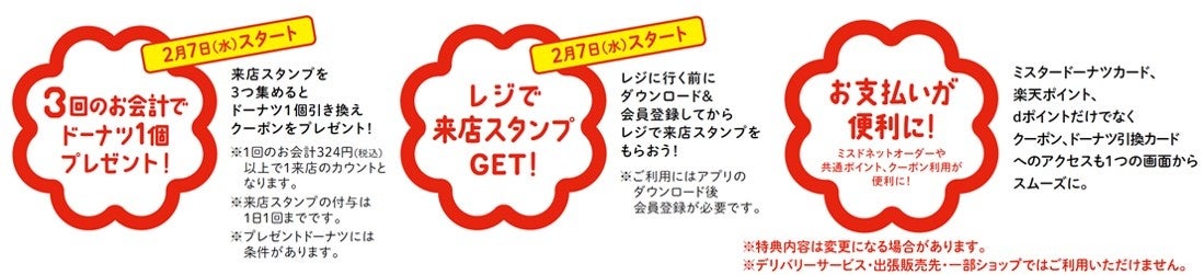【ミスタードーナツ】2月7日(水)から『ミスタードーナツアプリ リニューアル』新特典プログラム開始
