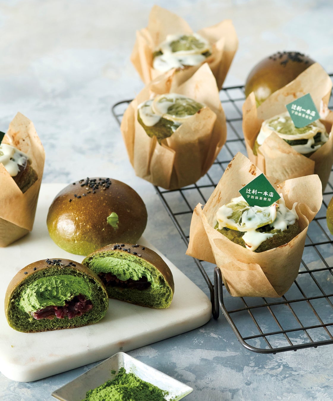 ベイカリー併設の16店舗限定で、宇治抹茶を使用した新作パン2種を発売