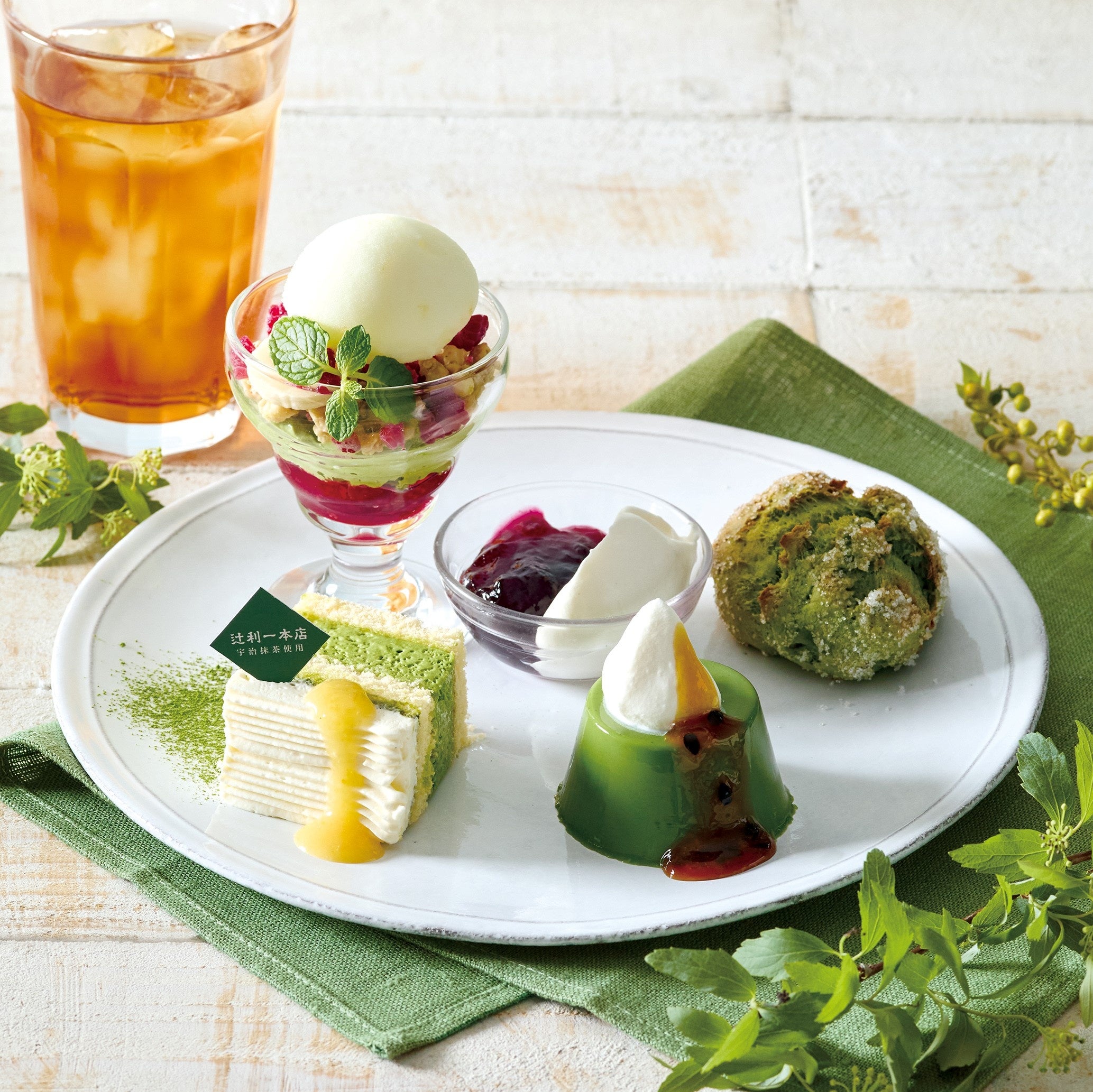 季節限定の宇治抹茶を楽しむスペシャルプレート。宇治抹茶を使用したスイーツ3品に加え、お好きなスイーツ1品をお選びいただけます。